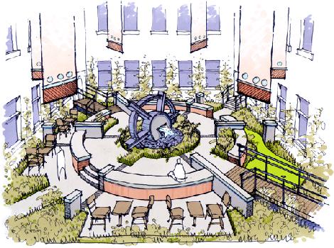 This project involved creating an inviting space for Oil and Gas workers to spend their leisure hours when not working on the Fort Hill Project. It involved 14 Atrium gardens, one per residence building and carries a nautical theme that would be familiar to the predominately East Cost workforce. The design of 2 mini-golf holes per residence would allow the residents to travel the other buildings to complete the mini-golf circuit. This project was unique because we were responsible for the total turnkey project right down to designing ceiling banners and constructing the site furnishings.