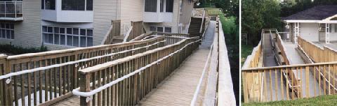 This home was renovated to support severely handicapped individuals and the task we were responsible for was constructing a large handicapped ramp. This ramp included a full concrete foundation and footing wall for the back section and a pressure treated timber wall for the front. the ramp itself was constructed from a combination of Concrete and wood. The sole purpose of the ramp was to allow safe exit for the residents incase of a flood emergency.