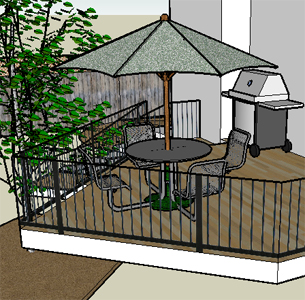 This design was done as a promotion at the CNE Garden Show, An individual presented this BEFORE picture of their home for us to use for demonstration purposes, The resulting Photo Image was a workable design that the visitor pasted on their fridge until such time they could afford to contract the implementation.