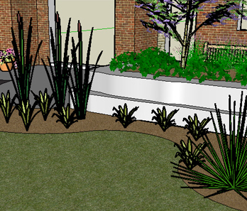 This is a simple entrance layout for a new client, the design address problems related to the navigation from the portico porch to the walkway, the existing method was disjointed and by extending the porch surface makes for a better approach. The seat wall obscures the walkway and compliments the raised garden.