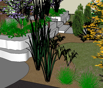 Planting will consist of 3 large ornamental trees to provide a semi-canopy over the walkway and low profile planting involving grasses and ground covers.