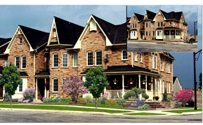 This was a large town home complex whereby the proposed landscape would consistently flow from one unit to the next, there was also the desire to maintain the same general theme. Photo Imaging was used to assist the developer in marketing these properties thru their printed literature.