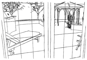 This is an illustration displaying the view from the kitchen nook thru the patio doors and into the backyard landscape, the client spends a considerable time indoors and I felt with this perspective the backyard would become more inviting.